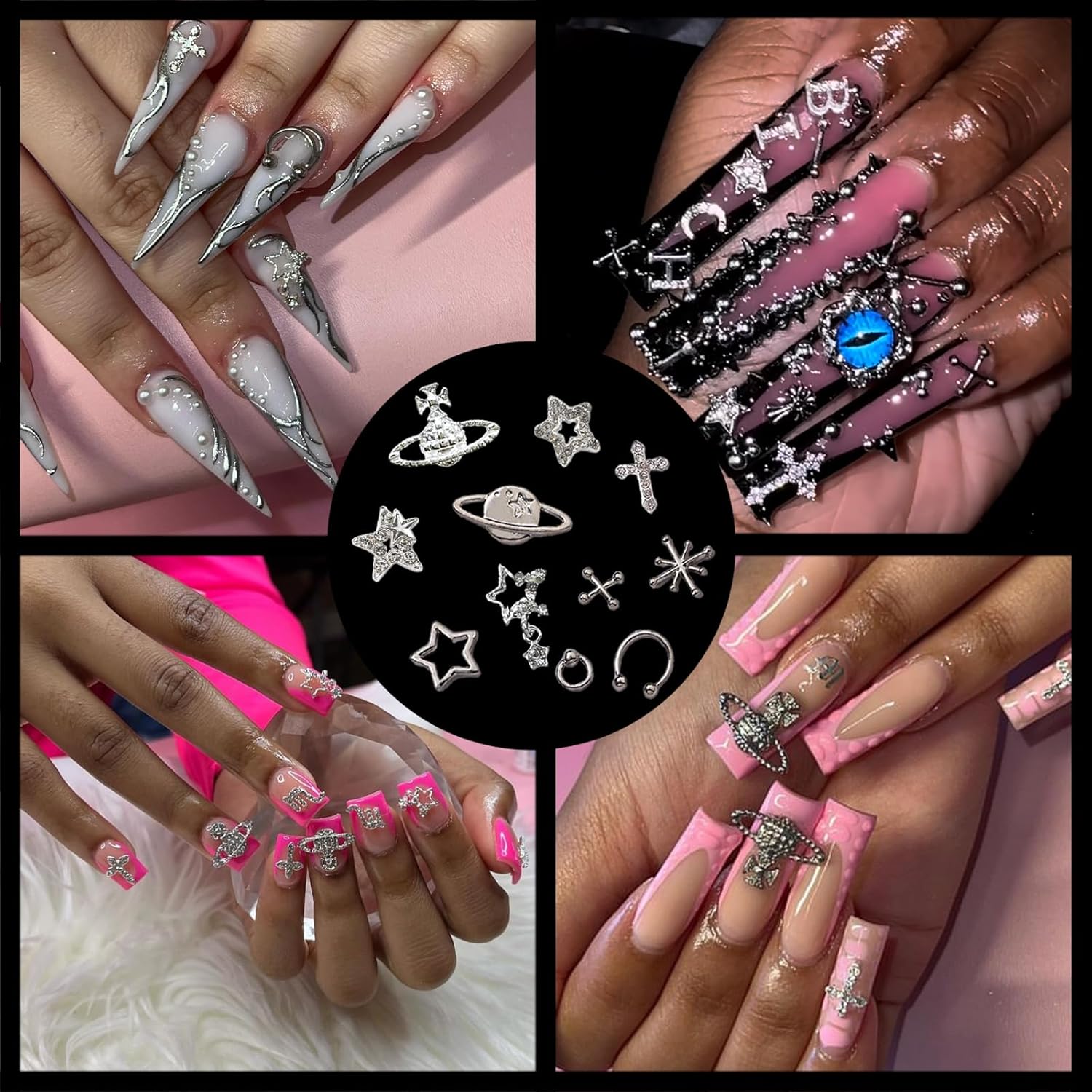 Rich Styles and High Quality : These nail charms include 11 styles including stars, planets, crosses, punks, etc.The nail charms are made of high quality alloy and rhinestones, silver nail charms grain clarity, not easy to fade. You can apply these sparkling nail charms to decorate your nails.BBATT-HAPPY